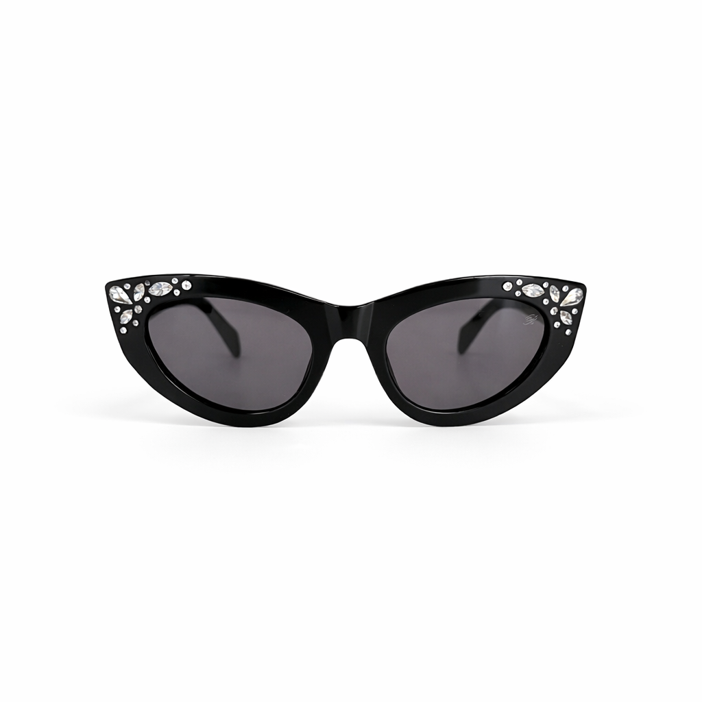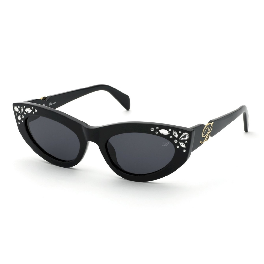 Occhiali da sole Blumarine – Modello cat-eye compatto in acetato nero lucido con cristalli decorativi