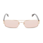 Il frontale in metallo dorato con doppio ponte conferisce struttura e luminosità al volto, esaltando il design geometrico e deciso. Le lenti colorate alla moda e perfette per ogni stagione, completano il look con un tocco di originalità e modernità, mantenendo alti comfort visivo e protezione.